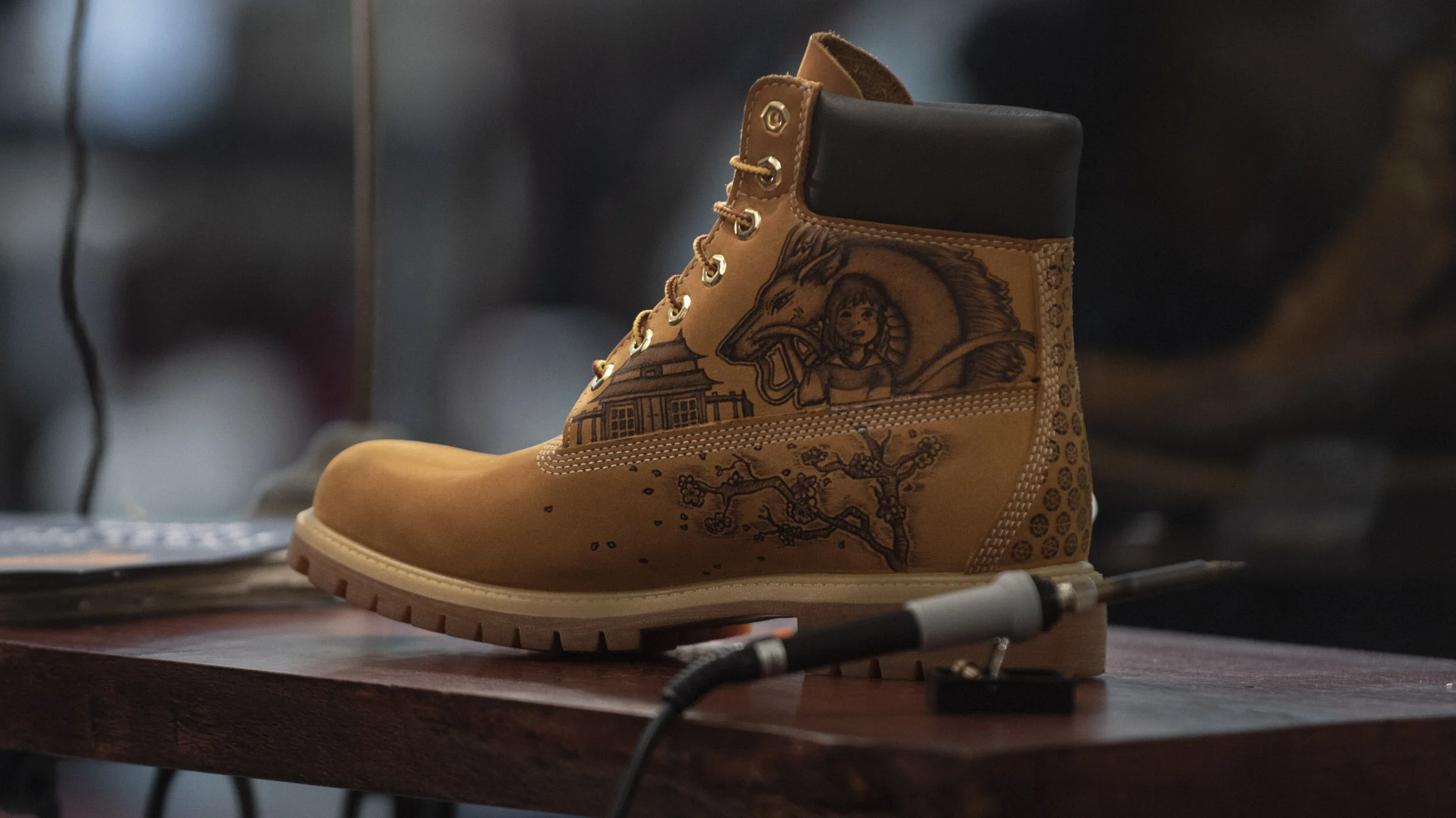 To mark their 45th anniversary, we were asked to customise a special collection of boots to celebrate the heritage of boot-making. The collection featured a reimagined iconic yellow boot with a sapphire coloured collar, two-tone yellow and sapphire laces, a dedicated hangtag, and an embossed tongue with the 45th anniversary logo. Our illustrator was commissioned by Timberland to customise new boots across stores in the UK including the flagship on London’s Regent Street.